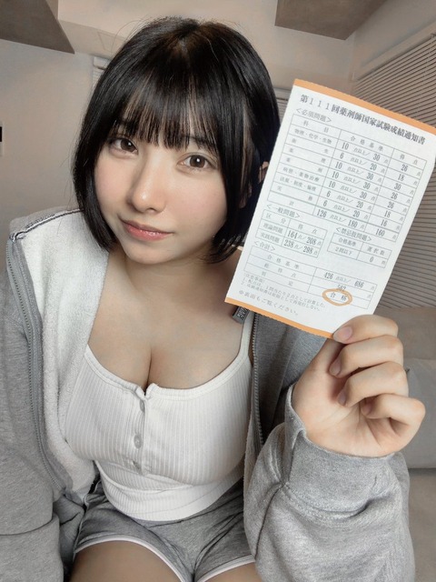 【画像あり】バスト96cm・Iカップのグラドルさん、薬剤師国家試験に合格