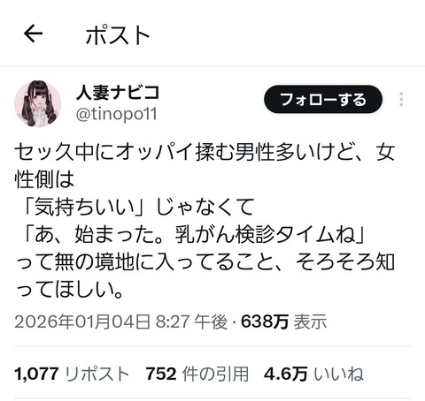 【悲報】人妻さん、おっぱいは揉まれても気持ち良くないことを明かす